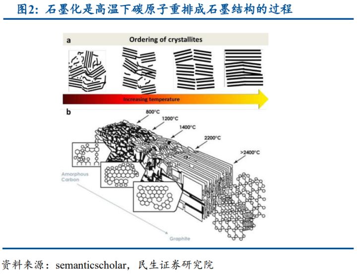 石墨化是指非石墨質(zhì)炭在高溫電爐內(nèi)保護(hù)性介質(zhì)中或隔絕空氣的情況下,把制品加熱到2000℃以上,因物理變化使六角碳原子平面網(wǎng)狀層堆疊結(jié)構(gòu)完善發(fā)展,轉(zhuǎn)變成具有石墨三維規(guī)則有序結(jié)構(gòu)的石墨質(zhì)炭。石墨化提升了產(chǎn)品的體積密度、導(dǎo)電率、導(dǎo)熱率、抗腐蝕性能及機(jī)械加工性能。石墨化是人造石墨負(fù)極生產(chǎn)過程中的關(guān)鍵工序。