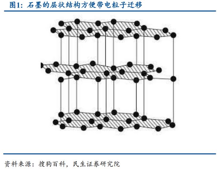 石墨具有層狀結(jié)構(gòu),各層面中碳原子 sp2 雜化軌道形成互成 120°的三配位平面六角網(wǎng)格,呈共價鍵結(jié)合,碳原子間距為 0.142nm。六角碳原子平面網(wǎng)格平行堆疊,構(gòu)成網(wǎng)狀六角形的碳原子在上下面相互平移到碳原子位于六角形的中心而有所錯開,第三層碳原子的配置和層相同。由于其具有耐高溫、導(dǎo)電性,廣泛應(yīng)用于:北辰石墨原材料