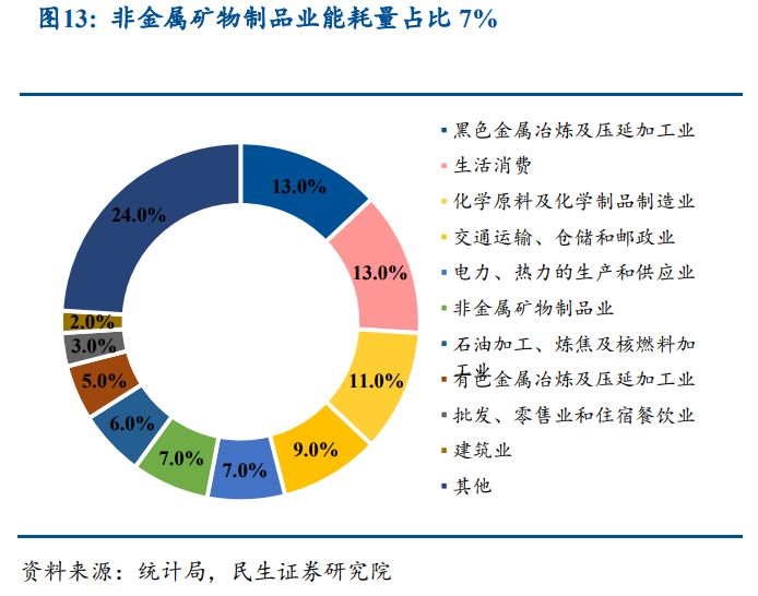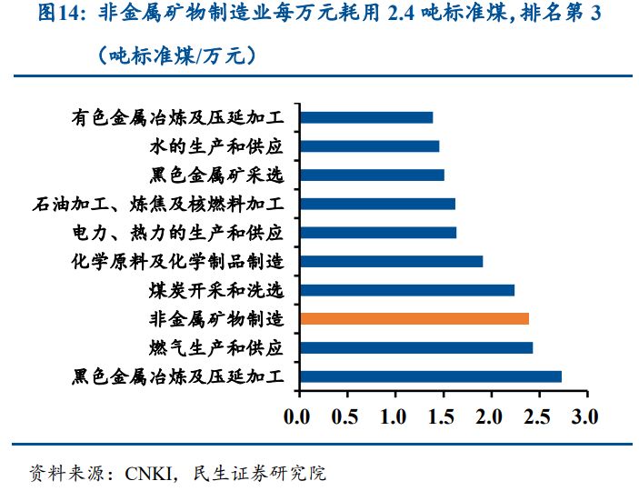 從工業(yè)門類上看,石墨化屬于的非金屬礦物制品業(yè)屬于高能耗量占比和高能耗強(qiáng)度行業(yè),在能耗雙控指引下,將受到重點管控。截止 2021 年 10 月底,非金屬礦物制品業(yè)能耗量占比7%,剔除生活消費和交通運輸、倉儲和郵政業(yè)后,在制造業(yè)中占比排名第 4;從能耗強(qiáng)度上看,非金屬礦物制造業(yè)每萬元耗用 2.39 噸標(biāo)準(zhǔn)煤,僅次于黑色金屬冶煉及壓延加工業(yè)和燃?xì)馍a(chǎn)和供應(yīng)業(yè)。