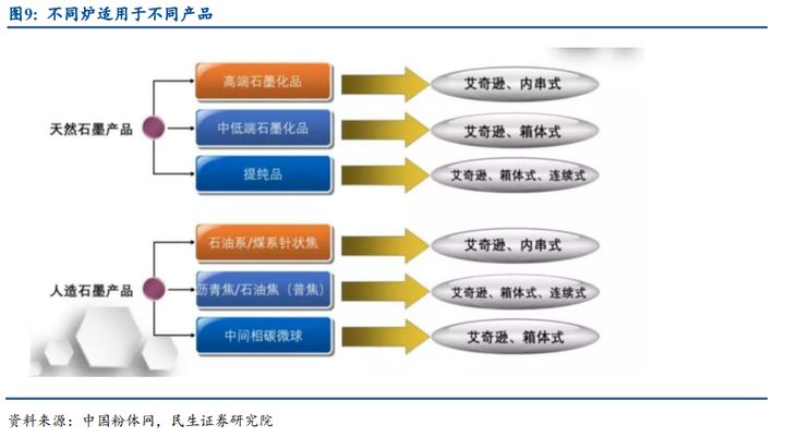 根據(jù)負(fù)極材料的產(chǎn)品形態(tài)和參數(shù)需求,不同石墨化爐有自己應(yīng)用場景。一般而言,艾奇遜爐和內(nèi)串爐由于加熱溫度高,石墨化率高。適用于高端產(chǎn)品;廂式爐適用于中端產(chǎn)品;連續(xù)爐當(dāng)前適用于低端產(chǎn)品。